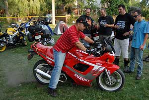 A színpadon viszont nagy "gáz" volt, azaz gázpalack, melyből héliumot lélegeztek és a közönség kedvenc nótáit énekelték el az énekverseny résztvevői. Az idei találkozó már jóval népszerűbb volt, mint elődjei. Míg 2004-ben mindössze 130 motoros látogatott ide, most ötszáz. Szentes, 2007. 07. 19. |