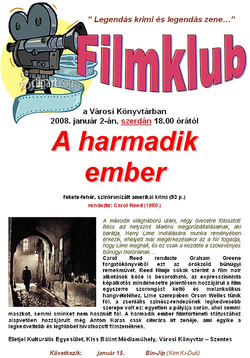 Január 2. Filmklub A harmadik ember (Carol Reed)