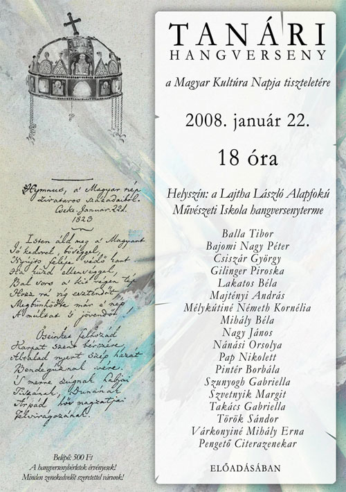 Január 22. Tanári hangverseny a Magyar Kultúra Napja tiszteletére