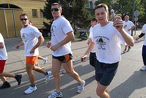 A futás útvonala melyet Kálmán Rajmund kezdett: Szentes – Szegvár – Mindszent – Mártély – Hódmezővásárhely – Szeged – Sándorfalva – Ópusztaszer – Baks – Csanytelek – Felgyő – Csongrád – Szentes. Az első staféta bot átadás Szegváron volt, ahol a jelképes botot, ami egy sugárfecskendő volt adta tovább Kálmán Rajmund társának, aki Mindszentig szaladt vele, és így tovább...