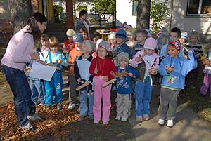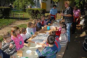 Ezen a délelőttön a gyerek akadálypályán vehettek részt az óvodában, ahol is madárhangokat kellett utánozniuk, fecskefészket építeniük, de lovasfogatozhattak is. Rengeteg ismeretet szerezhettek élő környezetünkről, melynek védelmét nem lehet elég korán oktatni, de az óvó nénik játékok formájában már alsó csoportos korban elkezdik.