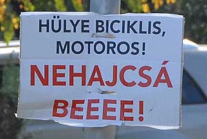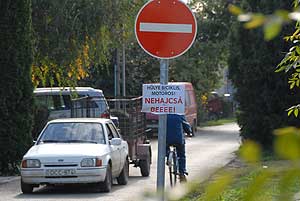 Talán nagyobb visszatartó ereje lenne, ha pontos összeget írt volna ki az illető, hogy "Ha behajtasz 10 db ropogós ezresed bááááánja!". Azt megállapíthatjuk, hogy ez sem lehet a probléma megoldása, ezen csak a közlekedési morál javításával lehet változtatni előreláthatólag 50 év múlva! :-( DE ADDIG IS NEHAJCSÁ BEEEE! Szentes, 2008. 10. 15.