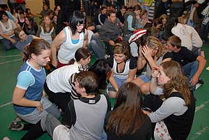A 11 feladatból ízelítőként egy pár: pudingevő verseny, gólyaformázás gyurmából, báli smink készítés, Nutellás WC kefe nyaló verseny, tesz az iskola ismeretéből. Többet nem is érdemes írni a gólyaavató feladatokról, mert az ott készült képek mindent elárulnak.