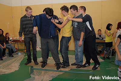 Minden évben figyeljük a feladatokat amelyekkel a felsőbb éves középiskolások meg kívánják lepni az alsóbb éveseket. Idén a legötletesebb feladatot itt a Zsoldosban láttuk, amelyhez nem kellett túl sok eszköz csak egy tornapad.