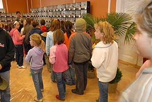 A pénteki napon nagy sok csoport jelentkezett be a madárfesztiválra, mert ezen a napon a szentesi diákok ingyen látogathatták meg a rendezvényt. Óvodások, iskolások egymás kezébe adták át a nagykapu kilincsét a Megyeházán és futótűzként terjedt, hogy melyik papagájt lehetett szóra bírni. Jó éjszakát! rikácsolta a bejárat melletti kakadu, melyre azonnal a terem közepéből meg is érkezett a válasz: köcsög! Szóval igen változatos szókinccsel rendelkeztek a madarak, de a kiállított szárnyasok nagyobb része mégis marad a madárfüttynél ki így - ki úgy!
