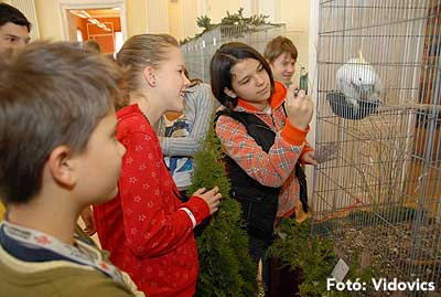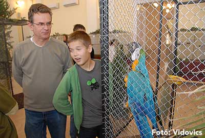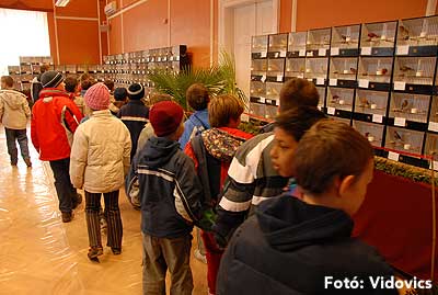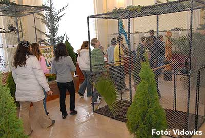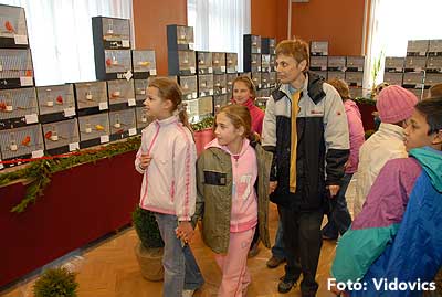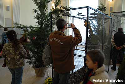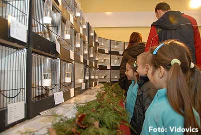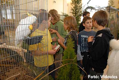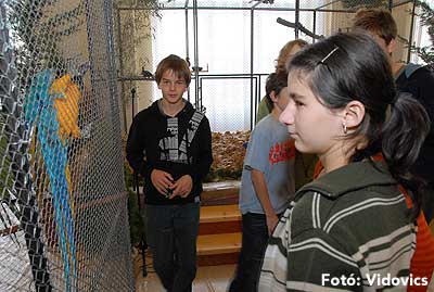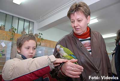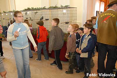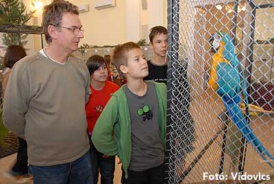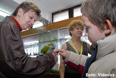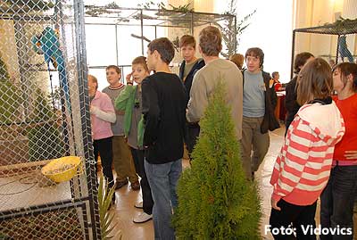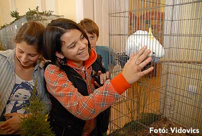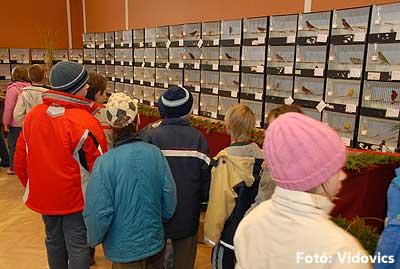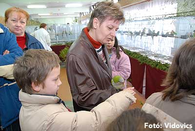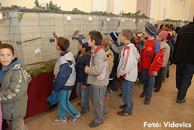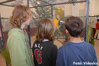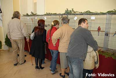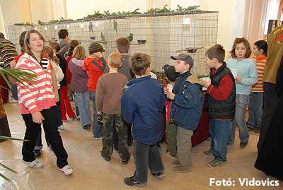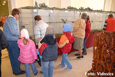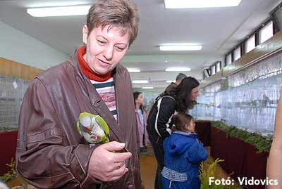 A pénteki napon nagy sok csoport jelentkezett be a madárfesztiválra, mert ezen a napon a szentesi diákok ingyen látogathatták meg a rendezvényt. Óvodások, iskolások egymás kezébe adták át a nagykapu kilincsét a Megyeházán és futótűzként terjedt, hogy melyik papagájt lehetett szóra bírni. Jó éjszakát! rikácsolta a bejárat melletti kakadu, melyre azonnal a terem közepéből meg is érkezett a válasz: köcsög! Szóval igen változatos szókinccsel rendelkeztek a madarak, de a kiállított szárnyasok nagyobb része mégis marad a madárfüttynél ki így - ki úgy!