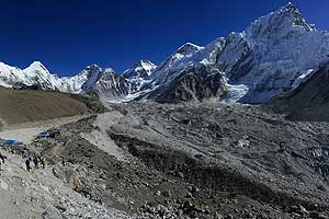 A legmagasabb település ahol megszálltunk, Gorak Shep 5140m. Jobbról a Khumbu gleccser, Kilátás a Chukung Peak csúcsról (5550m) balról a kisebbik nem havas csúcs a Kala Patthar (5550m).