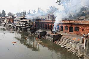 Utcai kép Kathmanduban A halottégetés helyszíne, Pashupatinath Kathmanduban