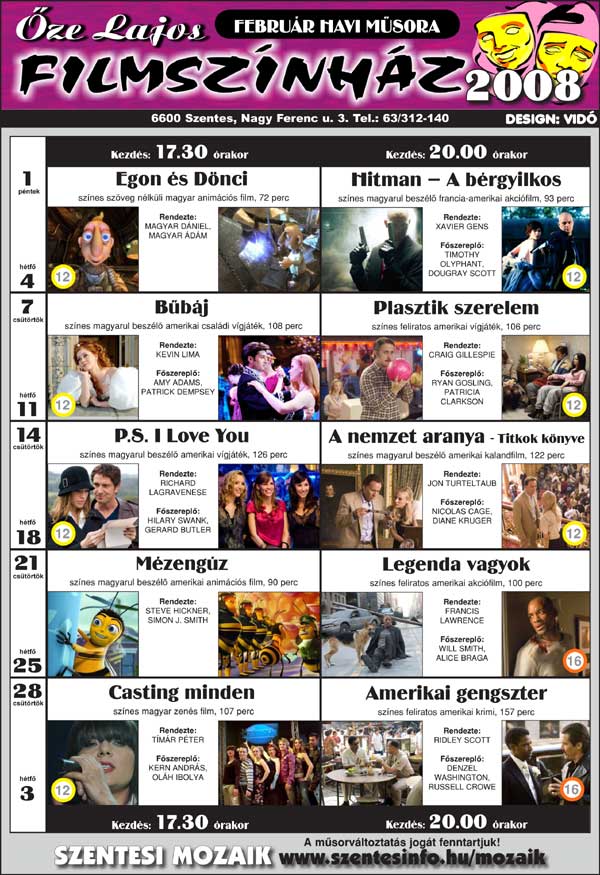 Őze Lajos Filmszínház 6600 Szentes, Nagy Ferenc u. 3. Tel.: 63/312-140