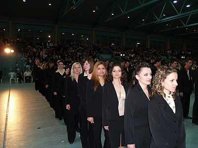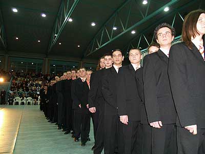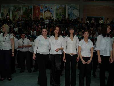 Talán a legnagyobb tanulói létszámmal rendelkező iskola a Zsoldos, vagy ha nem is, de nem sokkal marad le a HMG mögött ezért garantált volt a zsúfolásig megtelítődő sportcsarnok. A végzősök erre a napra készültek már hetek óta.