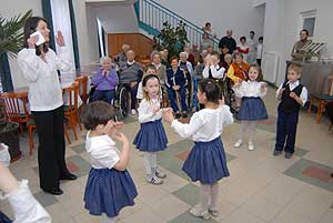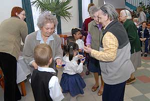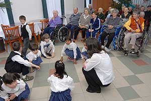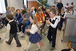 Az óvodások nem érkeztek üres kézzel, mert fali díszeket készítettek az időseknek, akik nagyon örültek nem csak az ajándéknak hanem a megannyi gyermekmosolynak is. Kellemes délelőtt volt, és az ablakokon kitekintve máris másképp sütött azon a napon a nap.