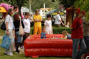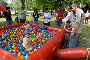 Délelőtt 9 órától várták a családokat, és a belépéskor minden gyermek strandlabdát kapott. Csak egy pár lépést kellett megtenni a bejárattól és máris láthatóak voltak azok a játékok mellyel a szervezők készültek.