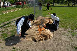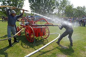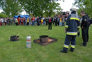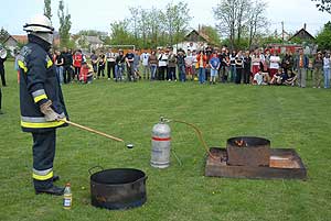 A délelőtt folyamán a szentesi tűzoltók bemutatókkal szórakoztatták a nézőközönséget: - megnézhették és megtapasztalhatták, hogy miért nem szabad a kigyulladt étolajat vízzel oltani, - látványos hagyományőrző szekérfecskendő bemutatót mutattak be, amelynek része volt az újonc tűzoltók beavatása, - a délelőtt folyamán, egy füsttel telített sátorba léphettek be az érdeklődők, kipróbálhatták a tűzoltók légzésvédő eszközeit és, hogy milyen a tájékozódás füsttel telített helyiségben.
