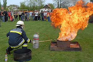 A képen egy edényben éppen lángra kapó olajra csak egy merőkanál vizet öntött a tűzoltó és a képen látható láng csapott fel. A magyarázat egyszerű a jelenségre: a nagy hő hatására a víz hidrogénre és oxigénre bomlik, ezáltal nem eloltja a tüzet, hanem inkább táplálja.