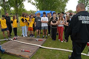 A csapatoknak három feladatot kellett megoldani: - tesztlap kitöltése, - képkirakó játék, - akadálypálya: (gerendán és palánkon való áthaladás, majd egy dobogón elhelyezett, összeszerelt tömlővezeték kifektetése és vízsugárral a cél leküzdése).