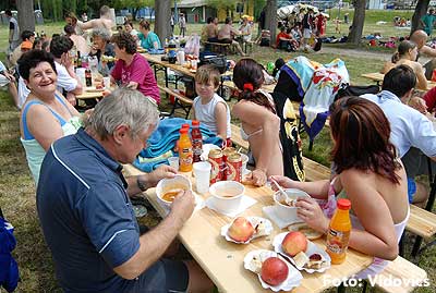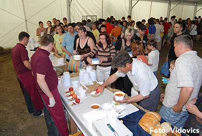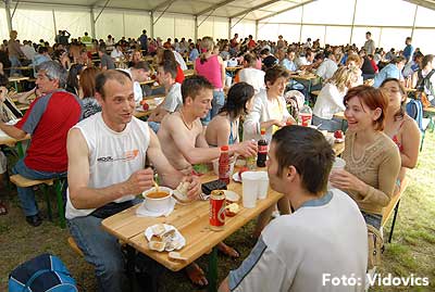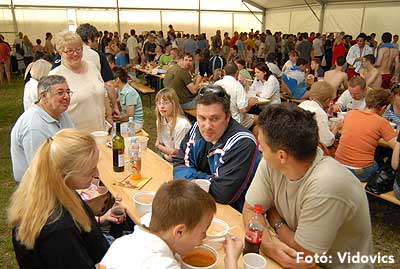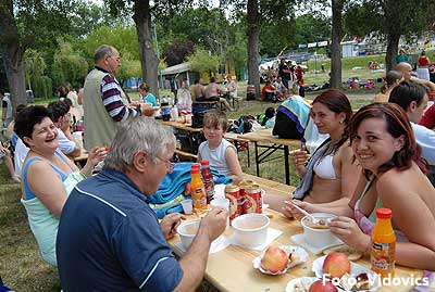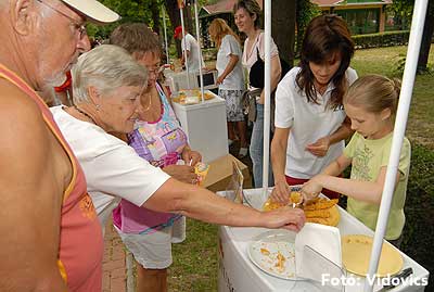 A vendéglátás sem maradt el. Délre 4300 adag gulyáslevest főztek a szorgalmas szakácsok. Almát és rétest is kapott mindenki, de mindezek mellett a legnagyobb ajándék a szórakozás volt. Látható a képeken, hogy mindenki jól érezte magát, és már előre találgatnak, hogy jövőre mi lesz?
