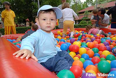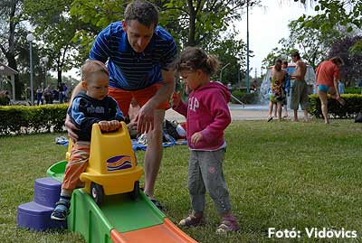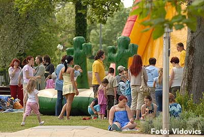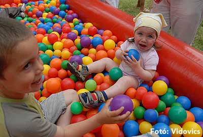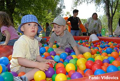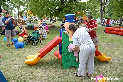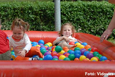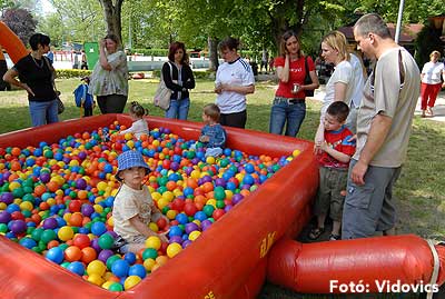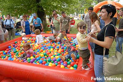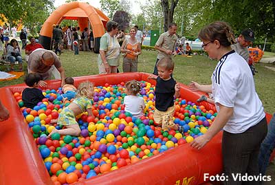 Délelőtt 9 órától várták a családokat, és a belépéskor minden gyermek strandlabdát kapott. Csak egy pár lépést kellett megtenni a bejárattól és máris láthatóak voltak azok a játékok mellyel a szervezők készültek.