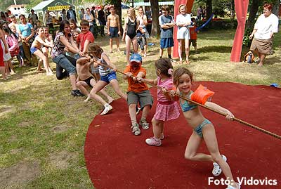 Ha már a kötélnél tartunk, akkor ne felejtkezzünk meg a délutáni gyermek kötélhúzó versenyről se. A strand egyedül is számos szórakozási lehetőséget rejt magában, de ezt sikerült tetézni a milliónyi játékkal.