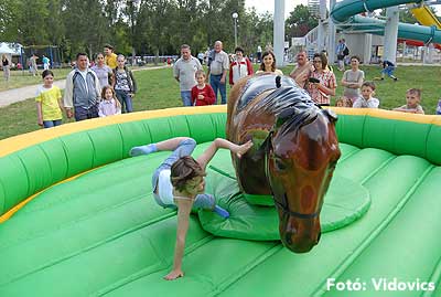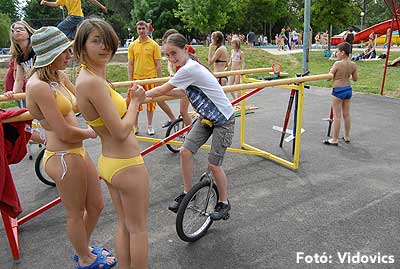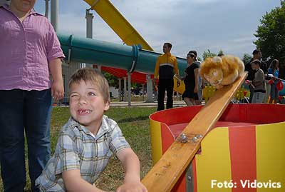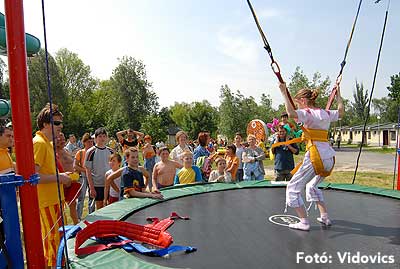 A nagy színpadi show elmaradt, így több játék volt a gyerekeknek. Megtudtuk, hogy nem egy nagy attrakcióval készültek a szervezők, hanem minél több és minél szélesebb réteget fedjenek le a szórakoztató helyszínek. A téma adott volt így a strand egy nagy cirkusszá alakult át. Egész napos oroszlánszelídítés volt az óriáscsúszdák mellett, de volt kötéltáncolási lehetőség is.