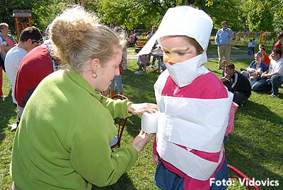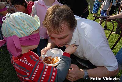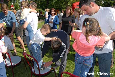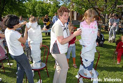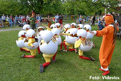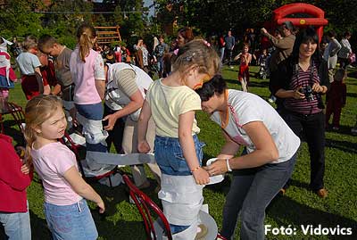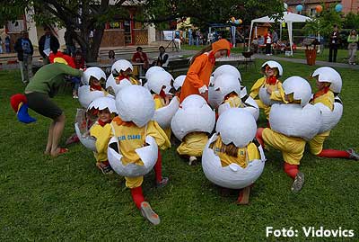 Volt öltöztető verseny apukáknak, múmiakészítés, lekváretetés, tojásfutás, kötélhúzás. A szervezők értékes jutalmakkal honorálták a versenyzők bátorságát. A rendezvényen számos önként ajánlkozó produkció mutatkozott be. Eljöttek a Koszta József Általános Iskola tanulói és tanárai, a SILVER táncosok, a Zafír hastáncosok és még a Szentes Városi Rendőrkapitányság nyomozókutyája is bemutatta tudását. A délután egy látványos bűvész show-val zárult, és éhen sem maradt senki, hiszen a bográcsos paprikás krumpliból is jutott mindenkinek.