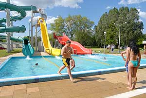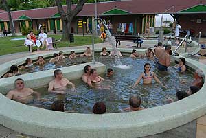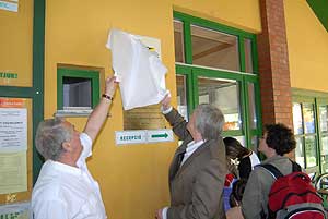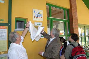 Dr. Albel Andor a Dél-Alföldi Gyógy- és Termálfürdők Közhasznú Egyesület – Termálklaszter elnöke és Szűcs Lajos alpolgármester leplezte le azt a táblát a ligeti strandfürdő bejárata mellett, mely tudatja a vendégekkel, hogy ez a fürdő is tagja a Dél-Alföldi Termálklaszternek.