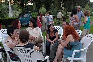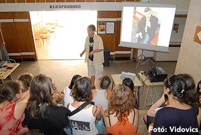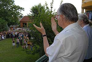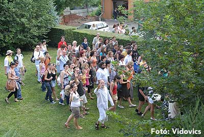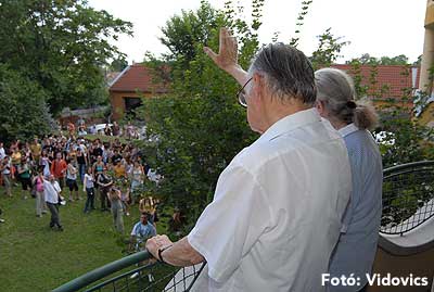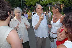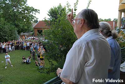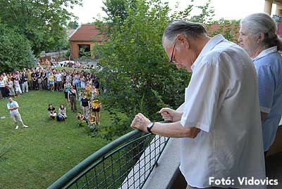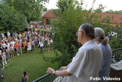 A délutáni 10 perces előadások előtt a résztvevők ellátogattak a gimnáziumhoz, és onnan tovább sétáltak Bácskai Miska bácsiékhoz.