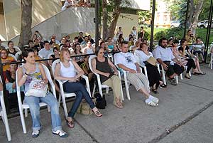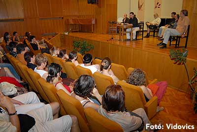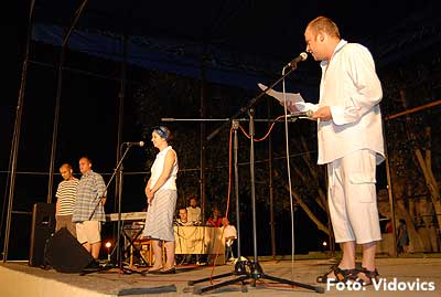 20 órától Perjésné Dózsa Erzsébet, Keserű Imre, Poszler György, Rácz Attila, Fesztbaum Béla, Hollmann Endre és Papp László Felolvasó színháza várt mindenkit a zeneiskola nagytermébe.