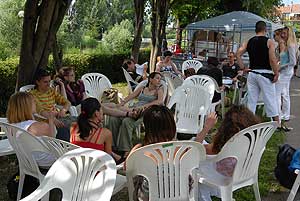 A két napos program második napján, szombaton 15 órától az ifjúsági park szabadtéri színpadán a volt drámaisok adtak elő osztályonként 10 perces produkciókat.