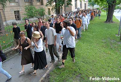 A fellépés a tavaly végzettek színpadi munkájával kezdődött, majd időrendben visszafelé haladva az 1982-ben ballagottak fellépésével fejeződött be.