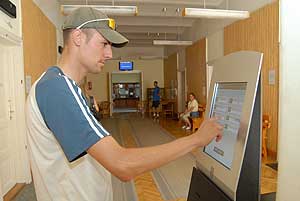 Röviden szeretnénk összefoglalni a rendszer használatával kapcsolatos alapvető információkat. Az ügyintézést minden esetben az okmányiroda előterében elhelyezett jegykiadó automatánál kell kezdeni. A képernyőn megjelenő ügytípusok közül a megfelelő felirat megérintésével lehet választani. Ha a fő ügytípus csoportokon belül (lakcímigazolvány, útlevél stb.) nem talál olyan menüpontot, ami egészen pontosan megfelel az igényeinek, akkor célszerű a hozzá legjobban hasonlítót választani, mert abban az esetben is olyan ügyintézőhöz fog kerülni, aki el tud járni az Ön ügyében. A választás után a gép tájékoztatásul közli, hogy az adott ügytípusra (ügyintézőkre) hány várakozó ügyfél van és két lehetőséget kínál fel: VÁRAKOZOM Ebben az esetben egy sorszámot és néhány alapinformációt tartalmazó jegyet ad ki a gép. Az ügyintézők ez alapján fogják behívni. A sorszám aznapra szól és az előtte lévő szintén sorszámot kérők és időpontra érkezők számától függően a várakozási idő hosszú (több óra) is lehet.