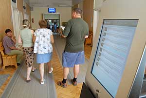 A szentesi Polgármesteri Hivatal Okmány Irodájában új ügyfélhívó rendszert állítottak be. Ez hasonlít a bankoknál megszokott rendszerhez, de még is egy kicsit bonyolultabb annál. Egyenlőre teszt üzemmódban működik a rendszer - tudtuk meg Dr. Seres Ilonától a jegyzői iroda vezetőjétől, aki az alábbi részben tájékoztatja kedves olvasóinkat az ügyfélhívó rendszer működéséről.