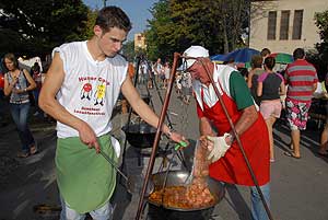 217 bográcsban főztek a szombati lecsófesztiválon Szentesen, melyet immár 7. alkalommal rendez meg a Hunor Coop Zrt. A versenyben részt vevő szakácsok több mint kétezer vendéget láttak el a hagyományos étellel.