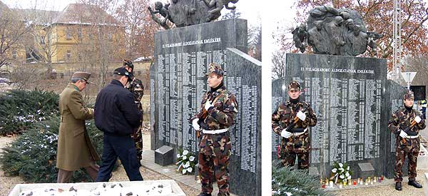 A II. világháború legnagyobb magyar tragédiájáról, a doni áttörés 66. évfordulójáról emlékeztek meg a szentesi MH 37. II. Rákóczi Ferenc Műszaki Zászlóalj katonái. 1943. januárjában, a Don mellett, a hazától több ezer kilométerre vívott élet-halál harcot mintegy 200 ezer magyar katona. A sokszoros túlerővel szemben, a fagyos télben is próbálták teljesíteni küldetésüket. Hősök voltak, akik a kilátástalan helyzetben is az utolsó leheletűkig küzdöttek a túlélésért, a haza szolgálatáért. A hősök azonban áldozatok is voltak, akiket a II. világháborúban, a hitleri vezetésnek megfelelni akaró politikai és katonai vezetés kényszere küldte a hazától távol. Azok a katonák, akiknek már a kilátástalan lehetőségek ellenére azt mondták akkor, és ott kell szolgálniuk. Közülük 150 ezren meghaltak, megsebesültek, hadifogságba kerültek. A doni katasztrófa örök fekete foltja marad a magyar történelemnek. Városi ünnepségek keretében emlékeztek a hős elődökre a műszaki katonák Szentesen és Kiskunfélegyházán. Varga István mk. alezredes, a zászlóalj parancsnokhelyettese a szentesi II. világháborús emlékműnél helyezte el az emlékezés örökmécsesét. Kiskunfélegyházán az alakulatot képviselő katonák három helyszínen, a II. világháború áldozatainak kopjafájánál, emléktáblájánál és emlékművénél rótták le kegyeletüket. Egy főhajtás, szorító néma csend, fájdalmas gondolatok az emlékművek előtt. Ők is Katonák, Magyarok, Hazafiak voltak. Emlékezzünk rájuk. Kép és szöveg: Juhász László szds. Szentes, 2009. 01. 19.