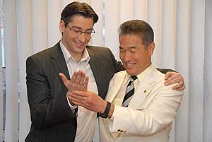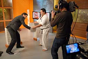 Demcsák Zsuzsa a műsorvezető páros másik tagja a verseny részleteiről érdeklődött Royama mestertől. A szervezés jelenlegi állásáról a mester mellett Dr. Gubacsi Attila a VB sajtóvédnöke számolt be, akik elmondták, hogy az októberben megrendezendő karate világbajnokság, a világ legnagyobb budo karate versenye lesz. Azurák Csaba és Brezovai Sándor közös Ytong tégla törését az alábbi linkre kattintva tekintheti meg: http://webcast.tv2.hu/dynamic/index.php?m=video&video_id=389062 Szentes, 2009. 01. 29.