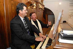 A hangversenyen Helmut Kummer (Bécs) bécsi származású, s a Nürnbergi Operaház tenor énekeseként hét évet töltő művész, valamint az őt orgonán kísérő Muladi József orgonaművész hangversenyén a szervezők a 100. születésnapra emlékeztek, valamint az orgona felújításának befejezésére gyűjtöttek adományokat. Szentes, 2009. 11. 26.