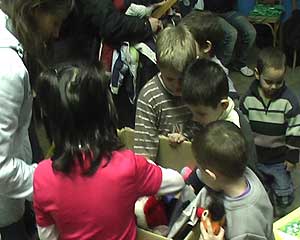A Gyermekek Átmeneti Otthonában, a Munkácsy utcában is tartottak egy kis vidám Mikulás napi műsort, ugyancsak a Csipike és Barátai Produkció közreműködésével. A pálmások itt mesekönyvekkel, színes ceruzákkal, mindenfajta játékokkal és egy nagy láda mosolygós pirosalmával ajándékozták meg a gyerekeket. Családjaik, ismerőseik köréből gyűjtötték össze ezeket és igyekeztek vele örömet szerezni a gyerekeknek. Amint a képeken látható, ez sikerült. Nagy buzgalommal és lelkesedéssel választott magának ki-ki ajándékot. A Kertvárosi, Köztársaság úti, Óvoda Karácsony előtt a kérésnek megfelelő eszközöket kap a Pálmásoktól. A Városi Bölcsődében pedig játékkocka készleteket tesznek a Pálmások a picik karácsonyfája alá. Az ajándékozások a Pálmások Szövetsége tagjainak személyes adományai. Szentes, 2009. 12. 21.