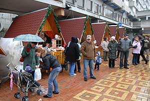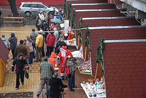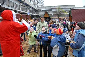 Az ünnepi díszbe öltöztetett belvárosban forró kakaóval és friss kaláccsal várták az idei kirakodó vásár megnyitóján az oktatási intézmények tanulóit és a lakosokat december 11-én.