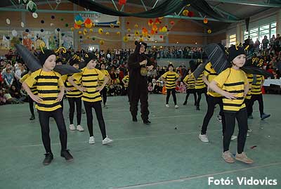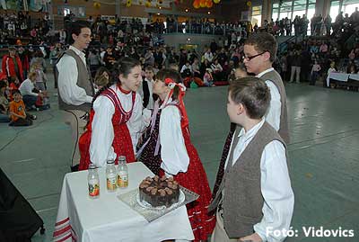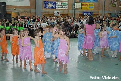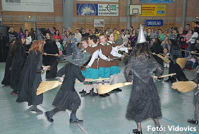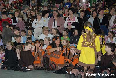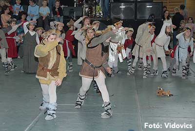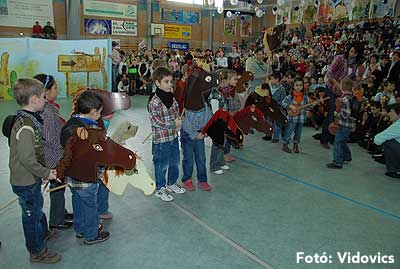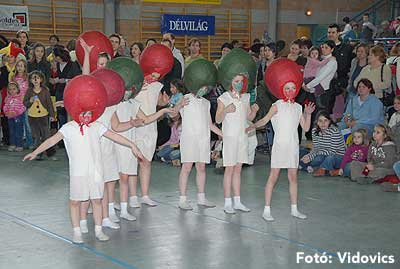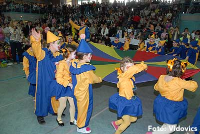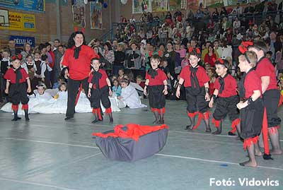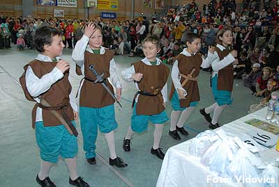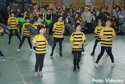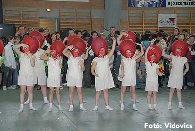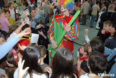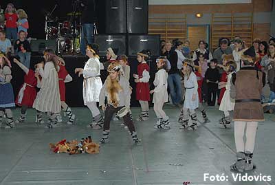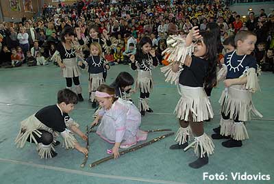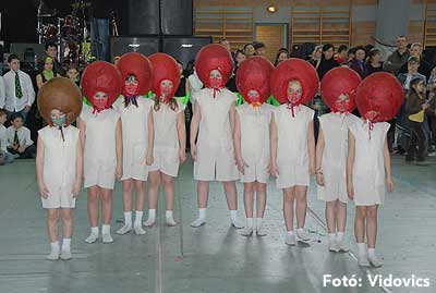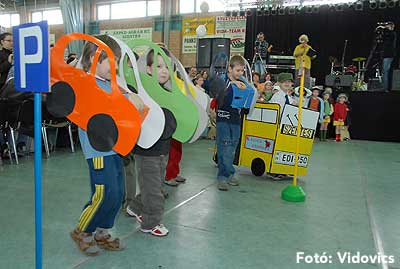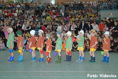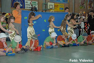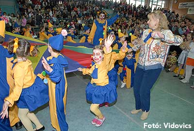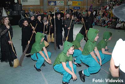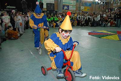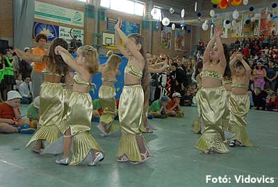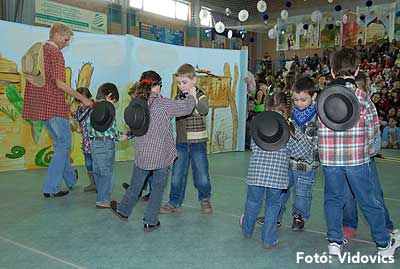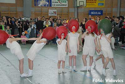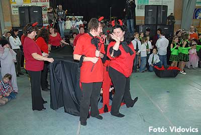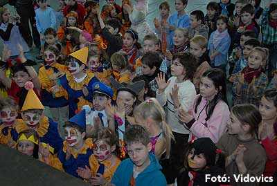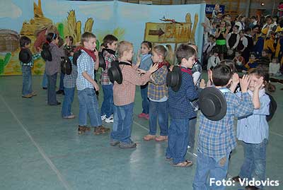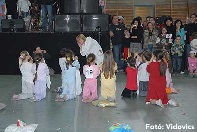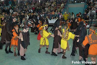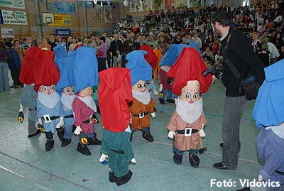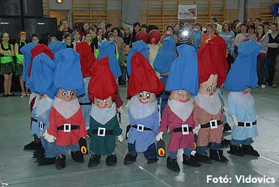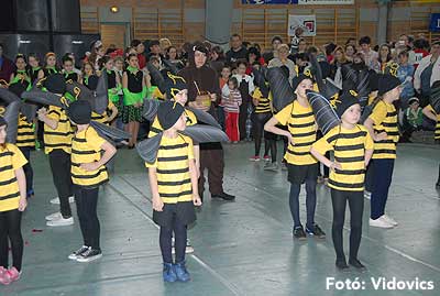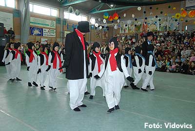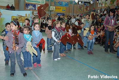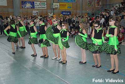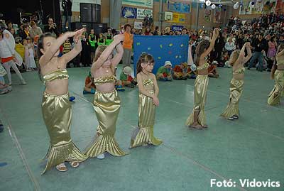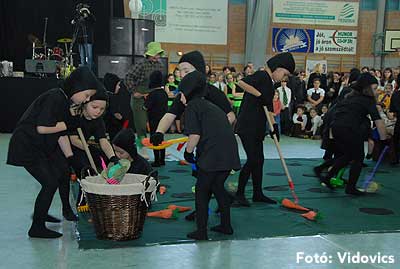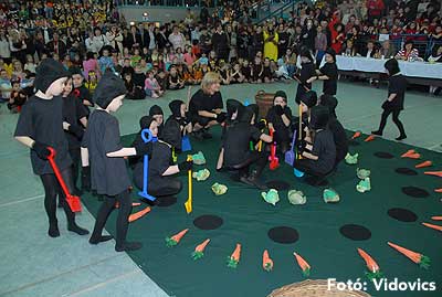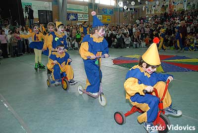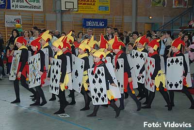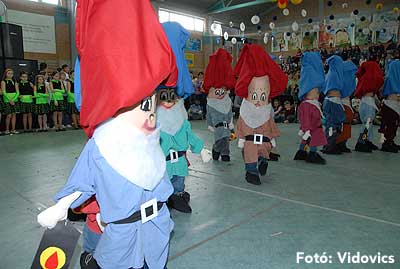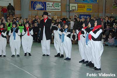 „Orrom krumpli, hajam kóc…” Másnap a Sportcsarnoké volt a főszerep; itt került megrendezésre a Városi Farsang. Először az óvodás csoportok ötletes és érdekes műsorait tekinthette meg a - főleg szülőkből álló – közönség és a zsűri, majd az iskolások következtek. Volt itt vakondtánc, törepe-nagykereskedés, de még Hófehérke afrikai kalandján is izgulhattak a nézők. Az ügyes kis csoportok csoki csomagot kaptak, amiben mindenkinek lapult egy-egy tombolaszelvény is.