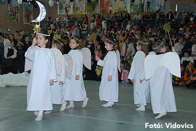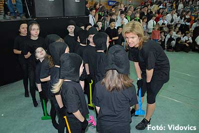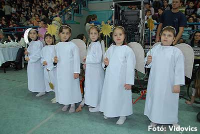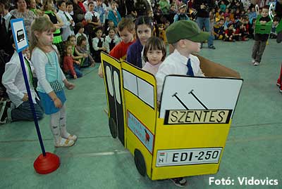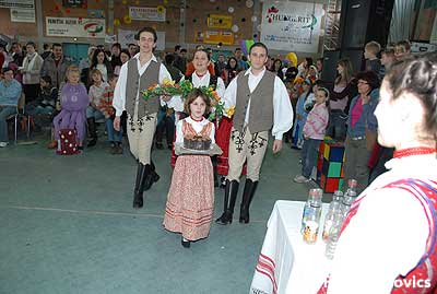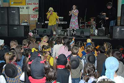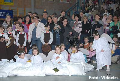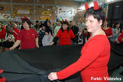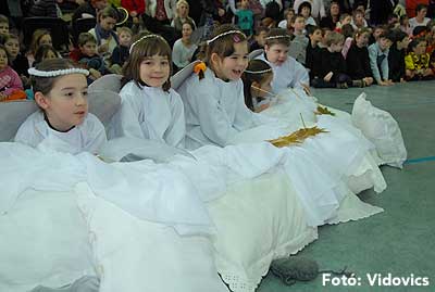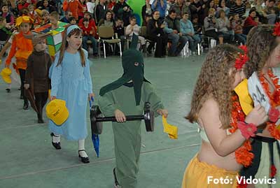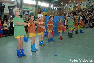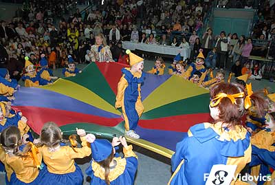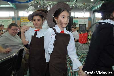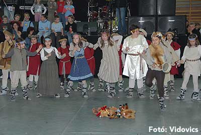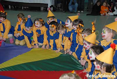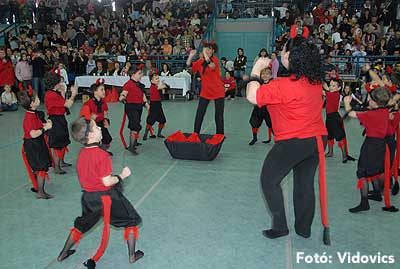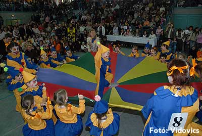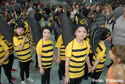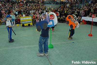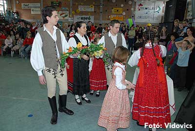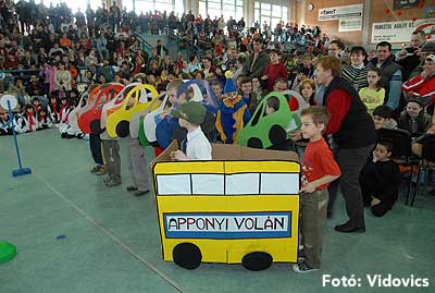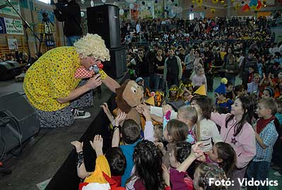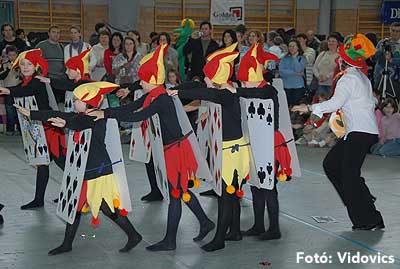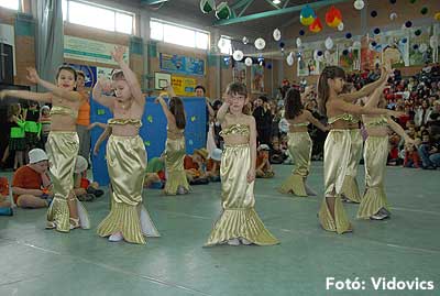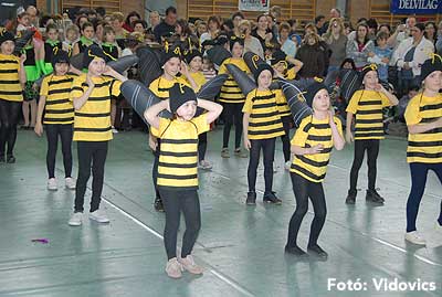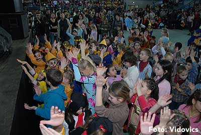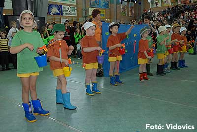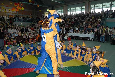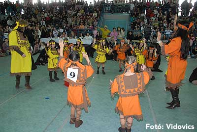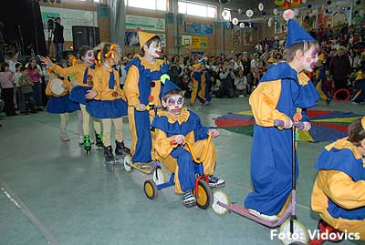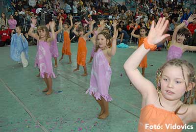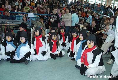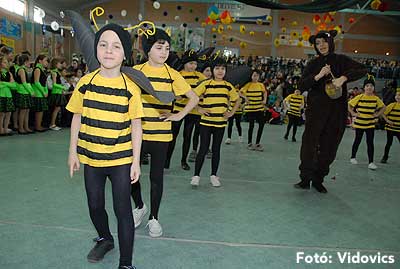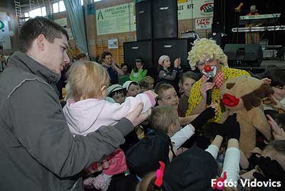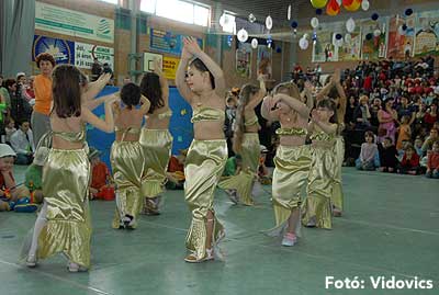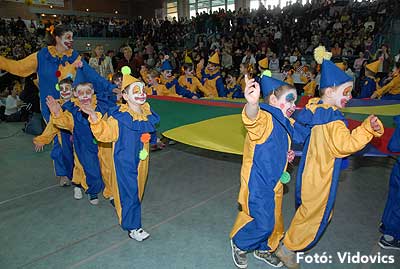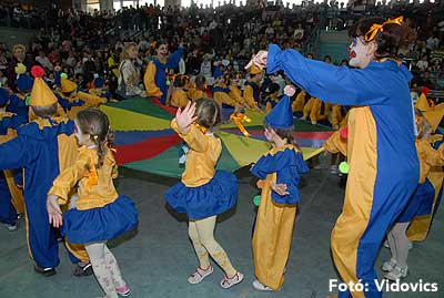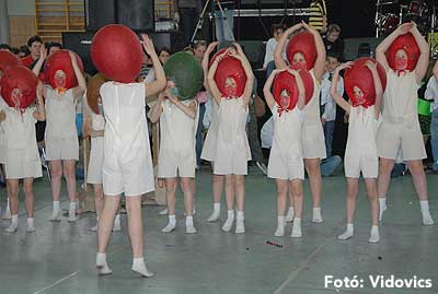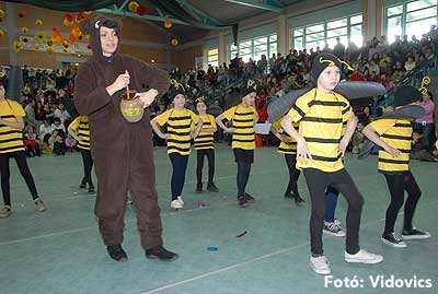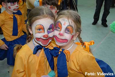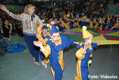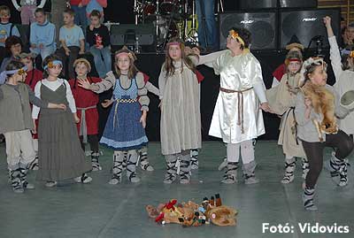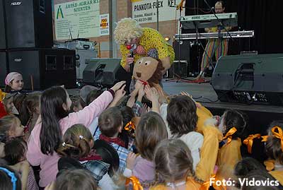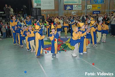 „Orrom krumpli, hajam kóc…” Másnap a Sportcsarnoké volt a főszerep; itt került megrendezésre a Városi Farsang. Először az óvodás csoportok ötletes és érdekes műsorait tekinthette meg a - főleg szülőkből álló – közönség és a zsűri, majd az iskolások következtek. Volt itt vakondtánc, törepe-nagykereskedés, de még Hófehérke afrikai kalandján is izgulhattak a nézők. Az ügyes kis csoportok csoki csomagot kaptak, amiben mindenkinek lapult egy-egy tombolaszelvény is.