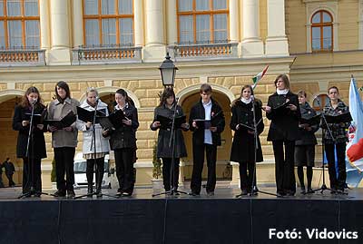 A beszédeket követően a Horváth Mihály Gimnázium dráma tagozatának műsorát láthattuk a Kossuth téren felállított színpadon, majd a szegvári Alapfokú Művészetoktatási Iskola Dobbantó Néptánccsoportja lépett fel.