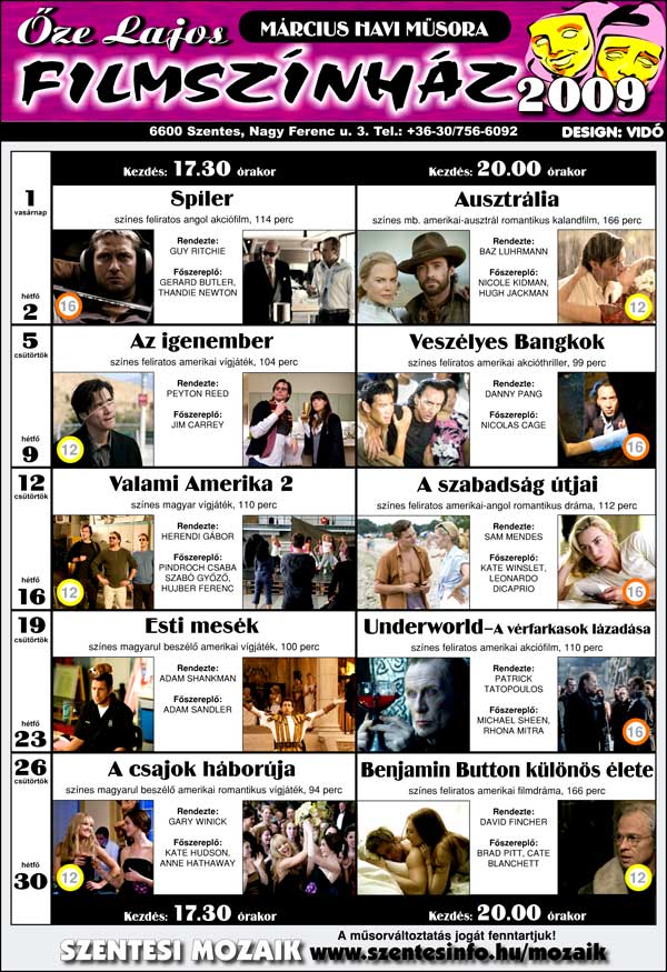 Őze Lajos Filmszínház 6600 Szentes, Nagy Ferenc u. 3. Tel.: 63/312-140