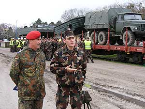 Paulus alezredes elmondta sok a közös, de sok a különböző is a két ország vasúti szállításhoz kötött feladataiban. Németországban minden zászlóaljban vannak ezen feladatok végrehajtására rendszeresített, szállítással foglalkozó katonák, míg itt Magyarországon a gépjárművek vezetőiből, kezelőkből jelölik ki a végrehajtó állományt a vagonírozás feladataira. A feladatok, felszerelések, eszközök azonosak, vagy nagyon hasonlóak. Kérdésemre a látottak alapján kifejezte, megítélése szerint nagyon jól és biztonságosan hajtják végre a feladatot a szentesi katonák, betartják a balesetvédelmi előírásokat. Külön kiemelte, hogy nagyon hasznosnak tartja az ilyen foglalkozásokat, mivel a katonák teljes létszámban részt vesznek ezen feladatokban, így mindenki megismeri gyakorlás formájában a tevékenységeket, és valós végrehajtás esetén gördülékeny a feladatok végrehajtása. Látogatása befejezéseként az alakulat parancsnoka Nyers József mérnök ezredes tájékoztatta Paulus alezredest a zászlóalj feladatairól, szervezetéről, eszközeiről, és a nemzetközi kötelezettségeiről. Kép és szöveg: Juhász László szds. Szentes, 2009. 03. 15.