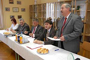 Az ülés elején Kajtár István elmondta, hogy Szentesen a város két legnagyobb üzemében (Hungerit, Ledrand) található intézményi tűzoltósággal is jó kapcsolatot tartanak. A két üzem közül a Legrand intézményi tűzoltóság vezetőjét szeretné köszönteni, aki a tűzoltó szolgálatban 40 éves eredményes munkát végzatt. A Tűzoltószövetség vezetője Darázs Sándor elnök úr emléklappal köszöntötte Fábiján Mihályt a Legrand Zrt. intézményi tűzoltóság vezetőjét.