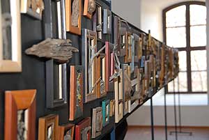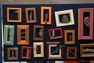 Van itt még a Nemzeti Színház előtti bukszusból egy ágas - bogas ágas bogas. Mellette egy gyönyörű zuzmóval felöltöztetett ágacska a Tisza mentéről. Egy icipici ékszerként ható tüske böki a tokaji Nagy Kopaszról, egy majd húsz éve gyűjtött vasoxiddal beszínezett faszilánk Aggtelekről. Lépjük tovább a harmadik paravánhoz. Itt rögtön szembetűnik egy harkály által ritmikusan kilyuggalt kéregdarab, van itt még négy darab Erdélyi beszélő ágacska, egy keretbe zárt élet, keretbe fagyott rügy a bükki vadászvölgyből és végül egy keretét szűknek érző platán ág Budáról. A negyedik paraván rejteget bálna alakú vízfát, szemünkbe néző kis vakondot gyökérből, vihar tépte nyárfa rügyet, egy zuzmóval csodálatosan megpecsételt ágacskát, egy kis keretbe zárt tüskét is találhatunk itt. És megint csak a legszebb egy csont fehérré fakult mini fa Erdélyből. Az utolsó előtti paravánon a hárstermést mindenki megismeri, egy ág kinőtt a keretből, mindeközben egy másik ágacska belenőtt a keretbe, van itt egy hatalmas fanyíl is mely kettévágta a keretet. Mellette, amerre a nyíl mutat egy szégyenlős gyökérdarabot látunk a világ legszebb helyéről a torockói Székelykőről. Itt állunk az utolsó paraván előtt illetve az első paraván háta mögött. Ezen van lángoló fatűz, víz koptatta fenyőkéreg, a térbe kapaszkodó szőlőkacs és egy mészkővel bevon fenyőfa szilánk. Legfölülről pedig egy keretből kinőtt mesebeli unikornis vizsgál minket.