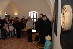 Végül következzék a három külön álló paraván, ha ki gyönyörködtük magunkat az újonnan felújított belső térben és az orgonában, következzék az első paraván. Ezen láthatunk a Tisza hullámteréből fagombát, a Tisza medréből vízfát, sárkányfejet vagy egy ember alsó testét a Mátrából és egy a keretből kibújó vakondot. A túloldalon szép göcsörtös fa mutatja az életerőt. Fenn az Erdélyi havasokban találni a „legnemesebb" , legjobban meggyötört faágakat, ott, ahol az év nagy részét hó borítja, lavina csiszolja a felszínt, betemeti az erdőket vastagon, szél formázza az ágakat az uralkodó széliránynak megfelelően, és mégis aki látta az égig érő érintetlen erdőket, törpe fenyveseket megérti Márai Sándor sorit a fákról a Kassai őrjárat című könyvében. Van még ezen a paravánon torockói összedőlt házból két faszilánk, egy ergonomikusan gyönyörű vízfa, zuzmó a keret szélén és egy keretből kiugró térbe nyúló gyökér torzó.