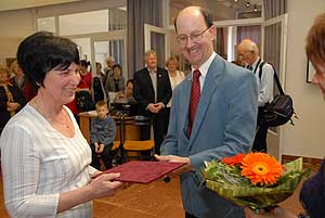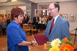 Szentes Város Alkotói díját Cseh Lajos a Horváth Mihály Gimnázium tanára vehette át Szűcs Lajos alpolgármestertől.