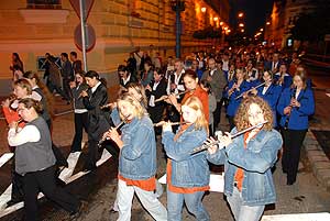 Sajnos azonban egy rövidke műsor után a zivatar "elmosta" a Luther téren rendezett "Népzenei Sokadalom" elnevezésű folklór találkozót a szerb néptánc és népzenei együttesek és a magyar fúvószenekarok fellépéseivel.