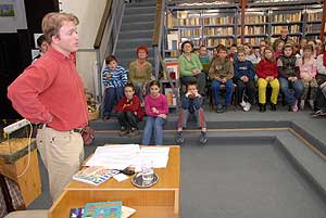 Lackfi János költő, író, műfordító, tanárt látták vendégül a Gyermekkönyvtárban 2009. április 3-án a Gyermekkönyvtárban. Eredeti nevén Oláh János, id. Oláh János József Attila-díjas költő-író fia, hogy apjával össze ne tévesszék, publikálása kezdeteikor a Lackfi nevet vette fel, és azóta így publikál. Olyan népszerű mesék alkotója, mint az Ágnes és az átváltozók, a Késmese, a Kávémese. Ezen a délelőttön a gyerekek kérdezhettek az írótól a mesék és a versek megszületésének körülményeiről, aki rövid történetekkel válaszolt. Szentes, 2009. 04. 19.