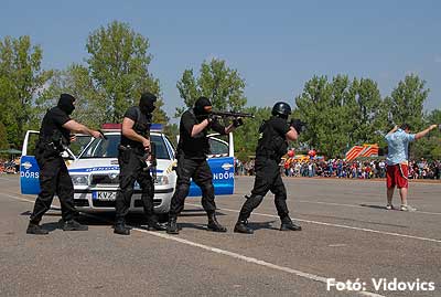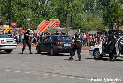 A bemutatók között kiemelt jelentősége volt a rendőrség bemutatójának, hiszen ők is ünnepi műsorral készültek. Az elfogások, gépkocsik akciók, kommandós feladatok sora vonzotta a kíváncsi tekinteteket. Amikor „kitört” a közelharc, elkezdődött a fegyverropogás, teljes lett az áhítat a közönség között. Ezek aztán tudják a dolgukat – lehetett hallani a nézők között állva. Ez a mondat ki is fejezte a lakosság, az emberek hozzáállását, tiszteletét a rend őrei irányába.