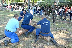 A bemutatók között kiemelt jelentősége volt a rendőrség bemutatójának, hiszen ők is ünnepi műsorral készültek. Az elfogások, gépkocsik akciók, kommandós feladatok sora vonzotta a kíváncsi tekinteteket. Amikor „kitört” a közelharc, elkezdődött a fegyverropogás, teljes lett az áhítat a közönség között. Ezek aztán tudják a dolgukat – lehetett hallani a nézők között állva. Ez a mondat ki is fejezte a lakosság, az emberek hozzáállását, tiszteletét a rend őrei irányába.